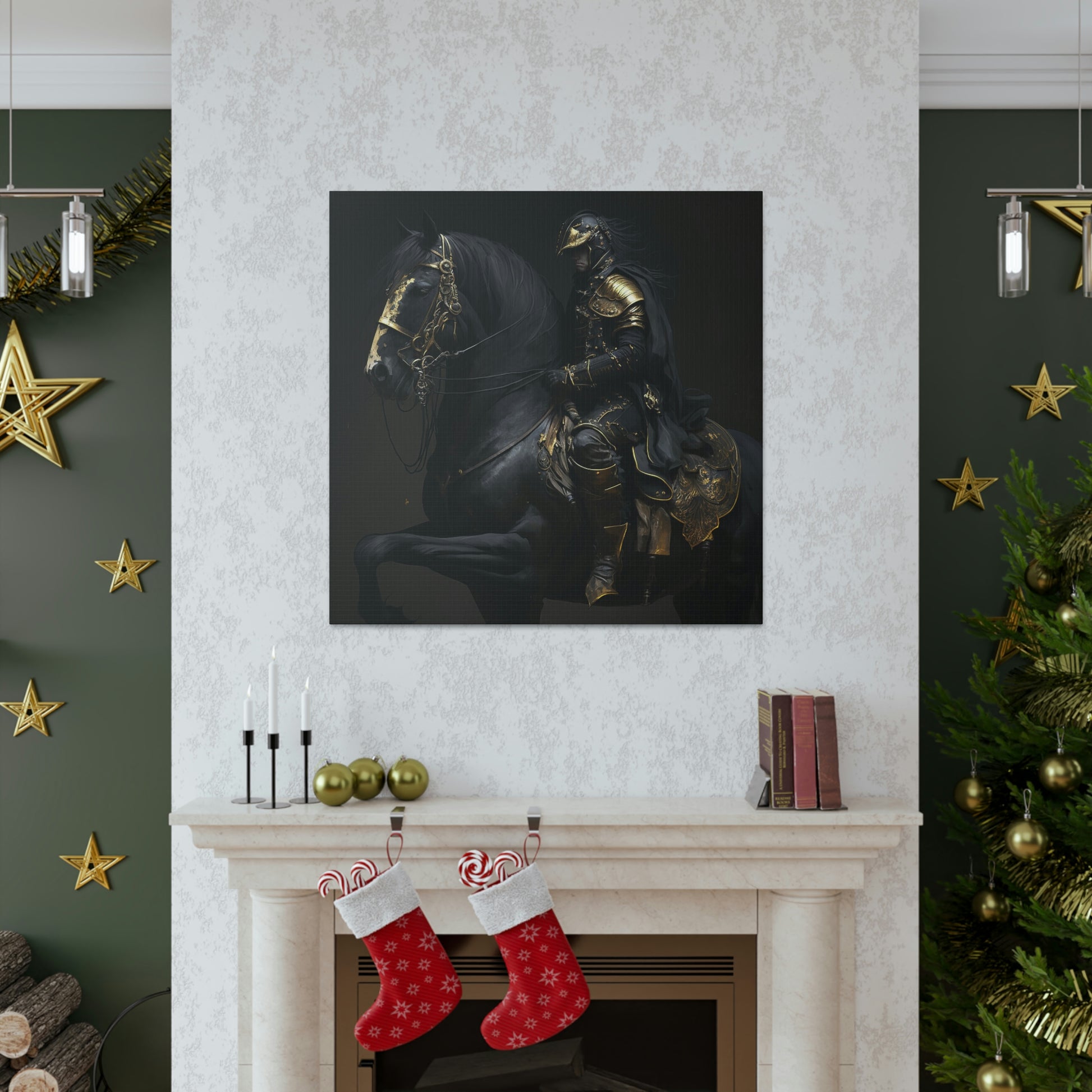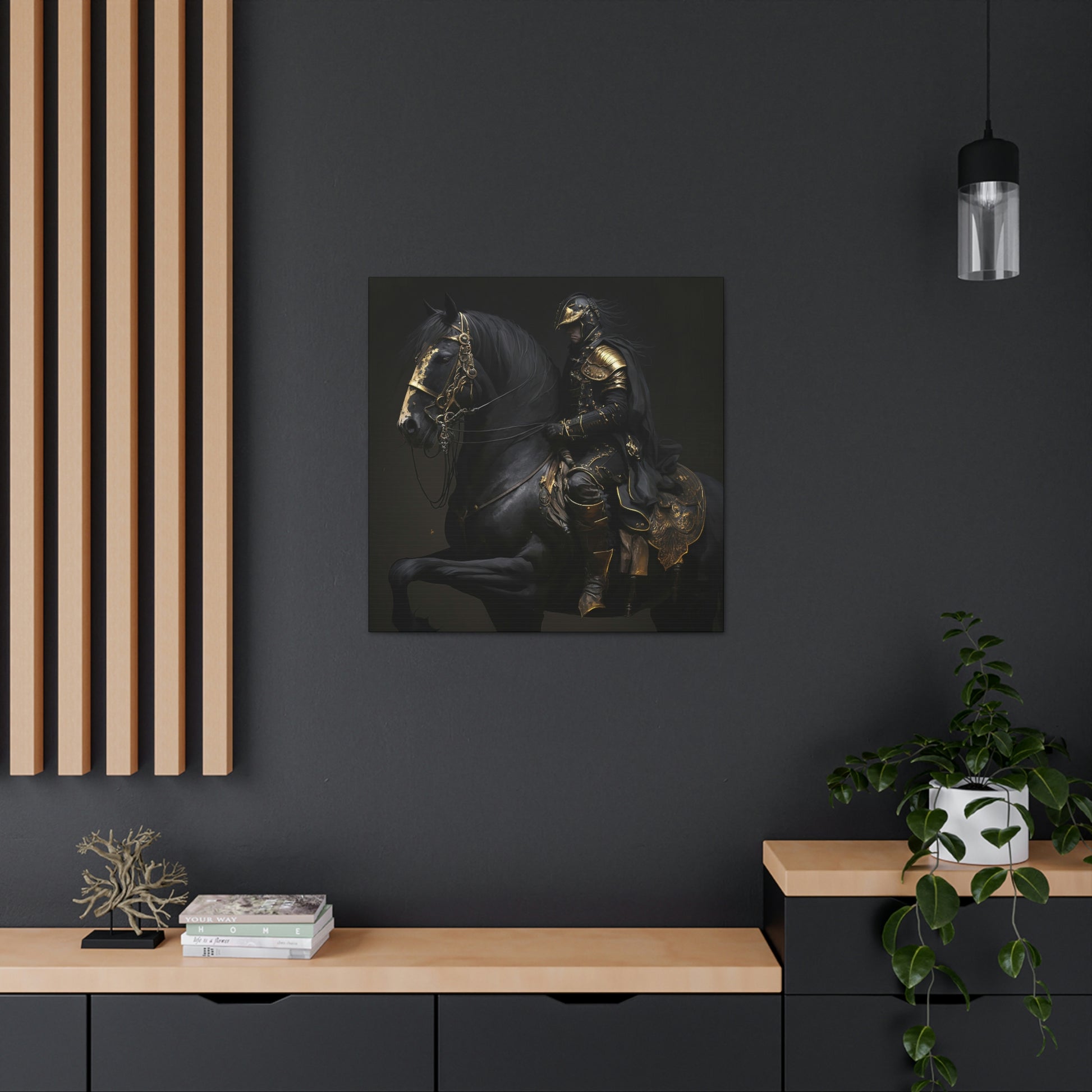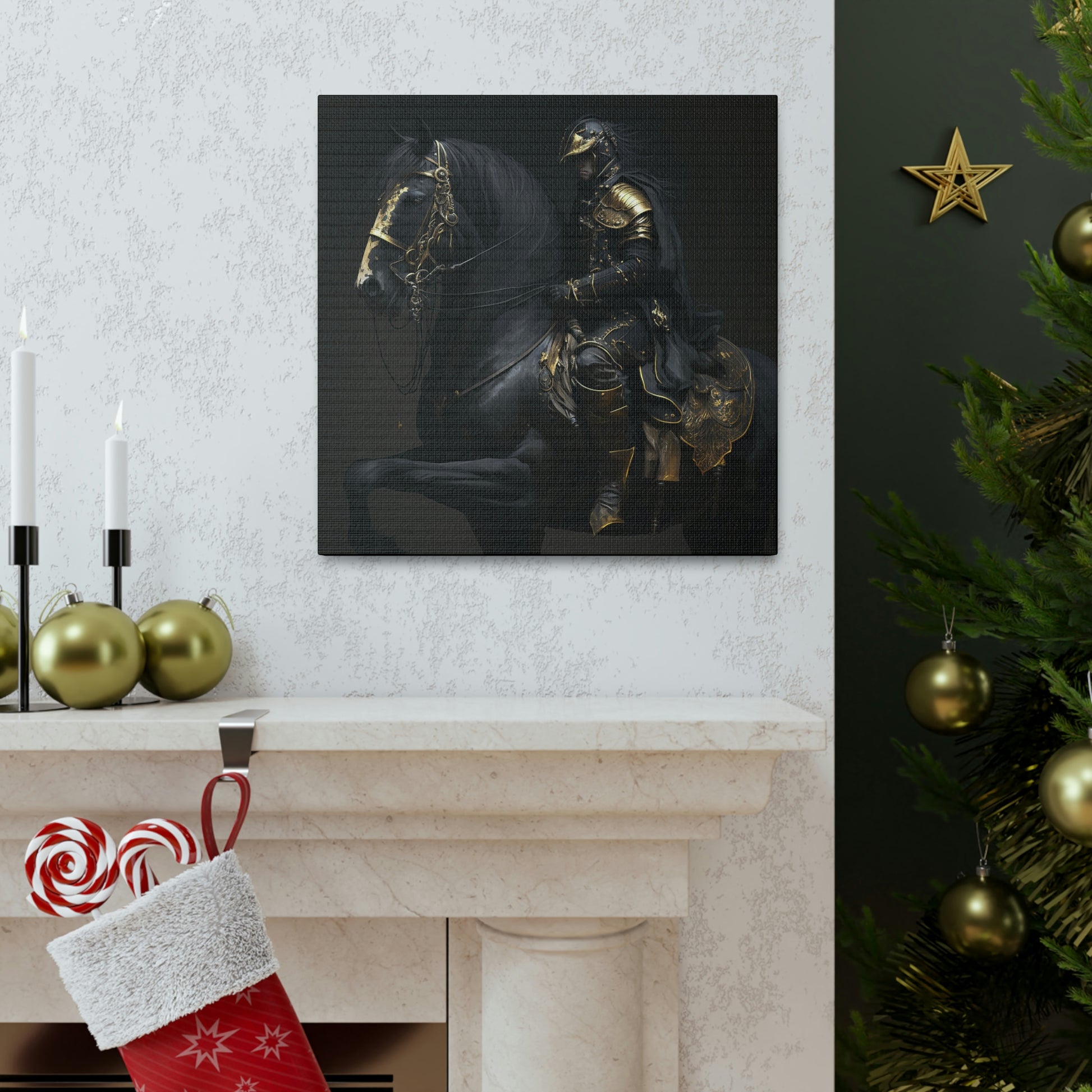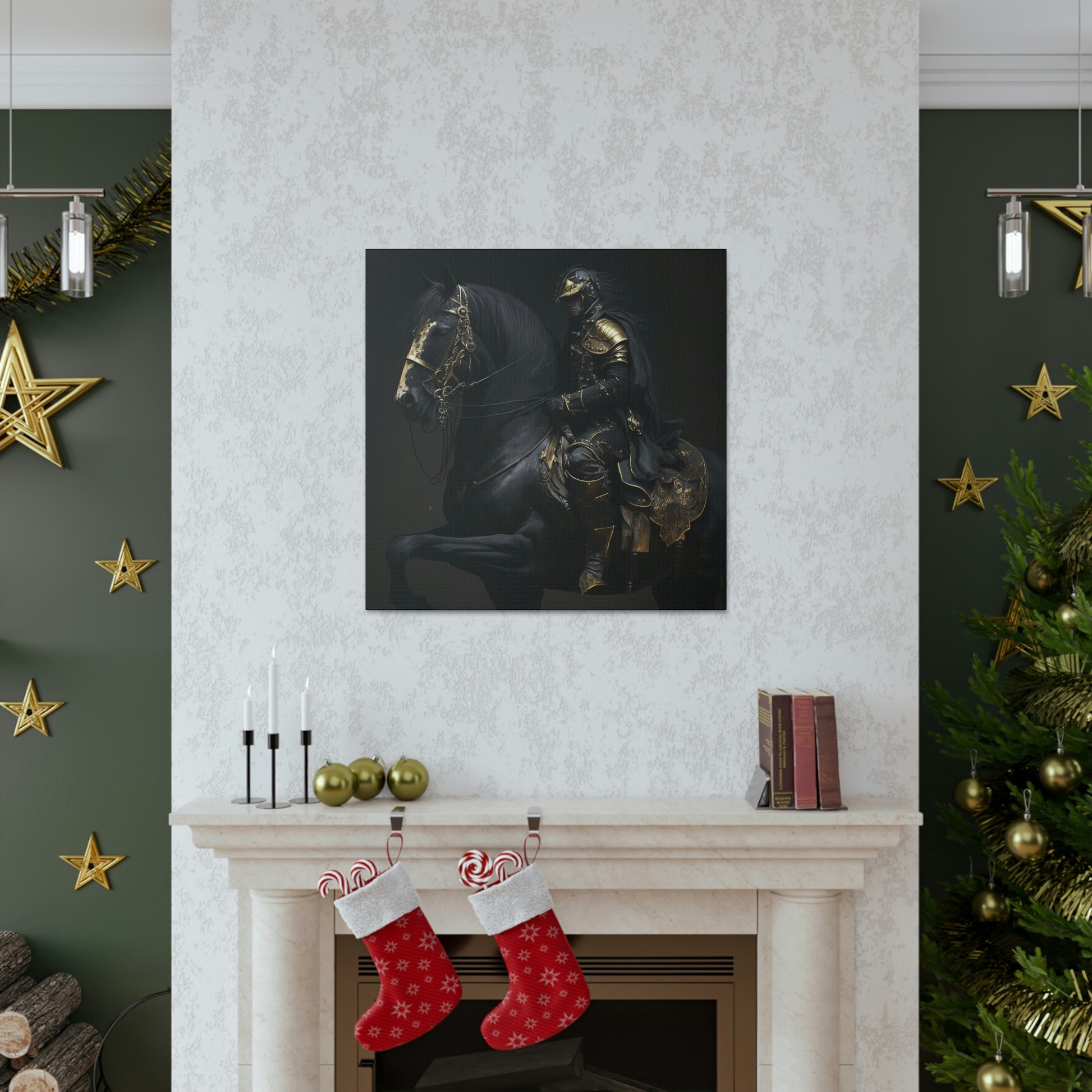 The black and gold mounted knight canvas print is a breathtaking and unforgettable work of art that is sure to inspire awe, respect, and admiration. It is a celebration of the chivalrous spirit and the enduring legacy of the knightly tradition, and a testament to the enduring power and beauty of human courage and nobility.