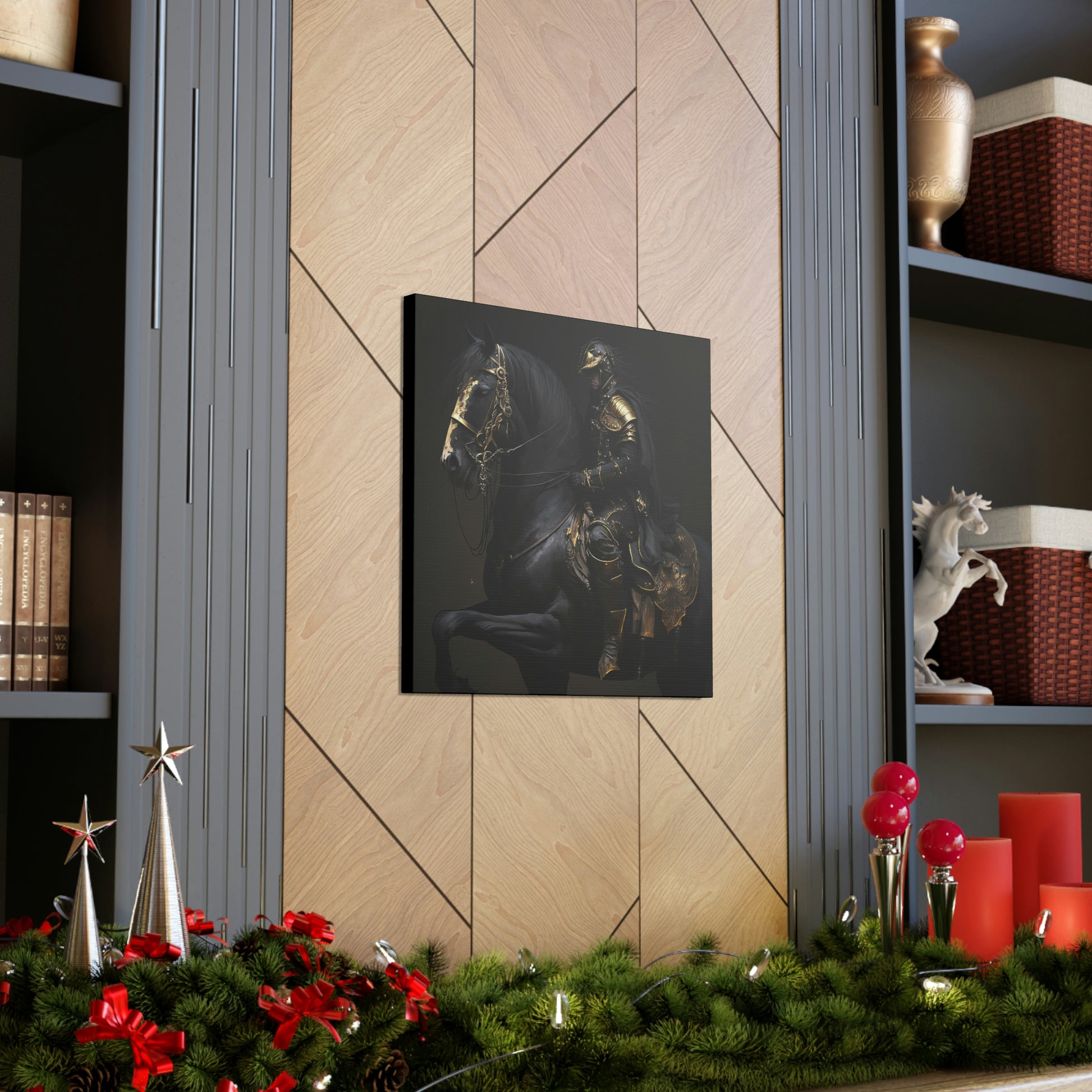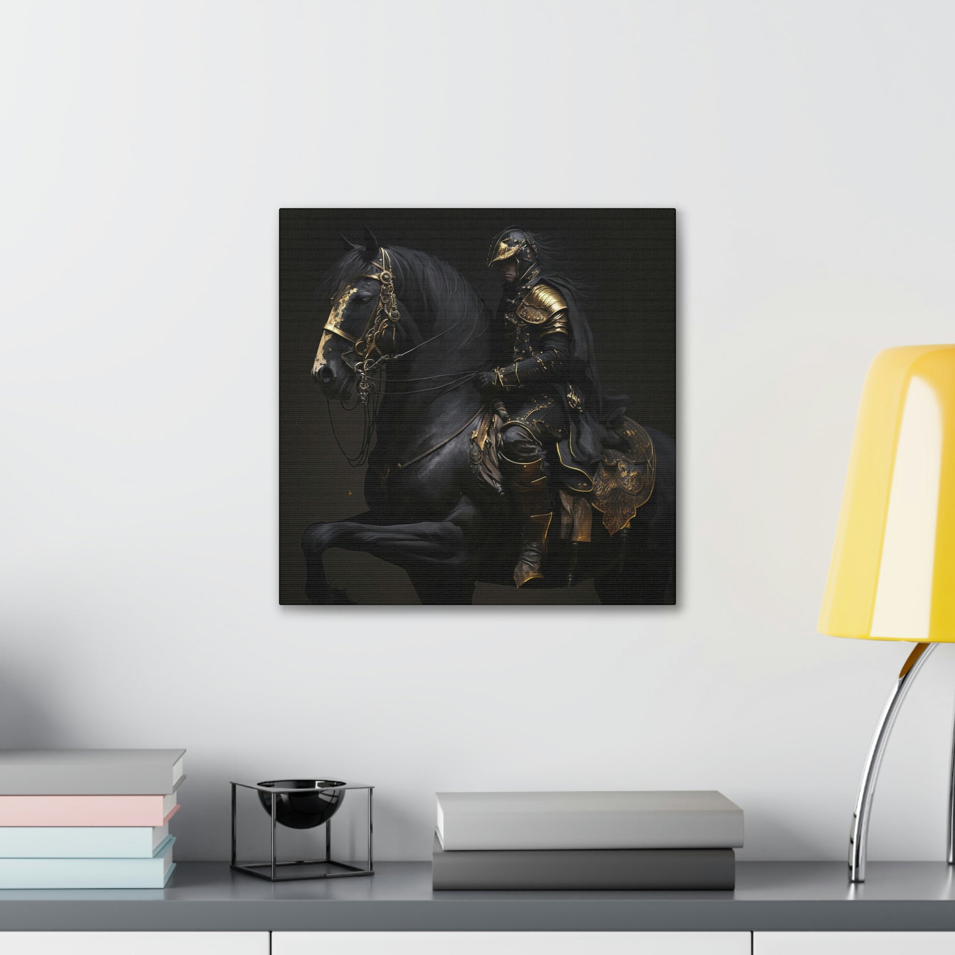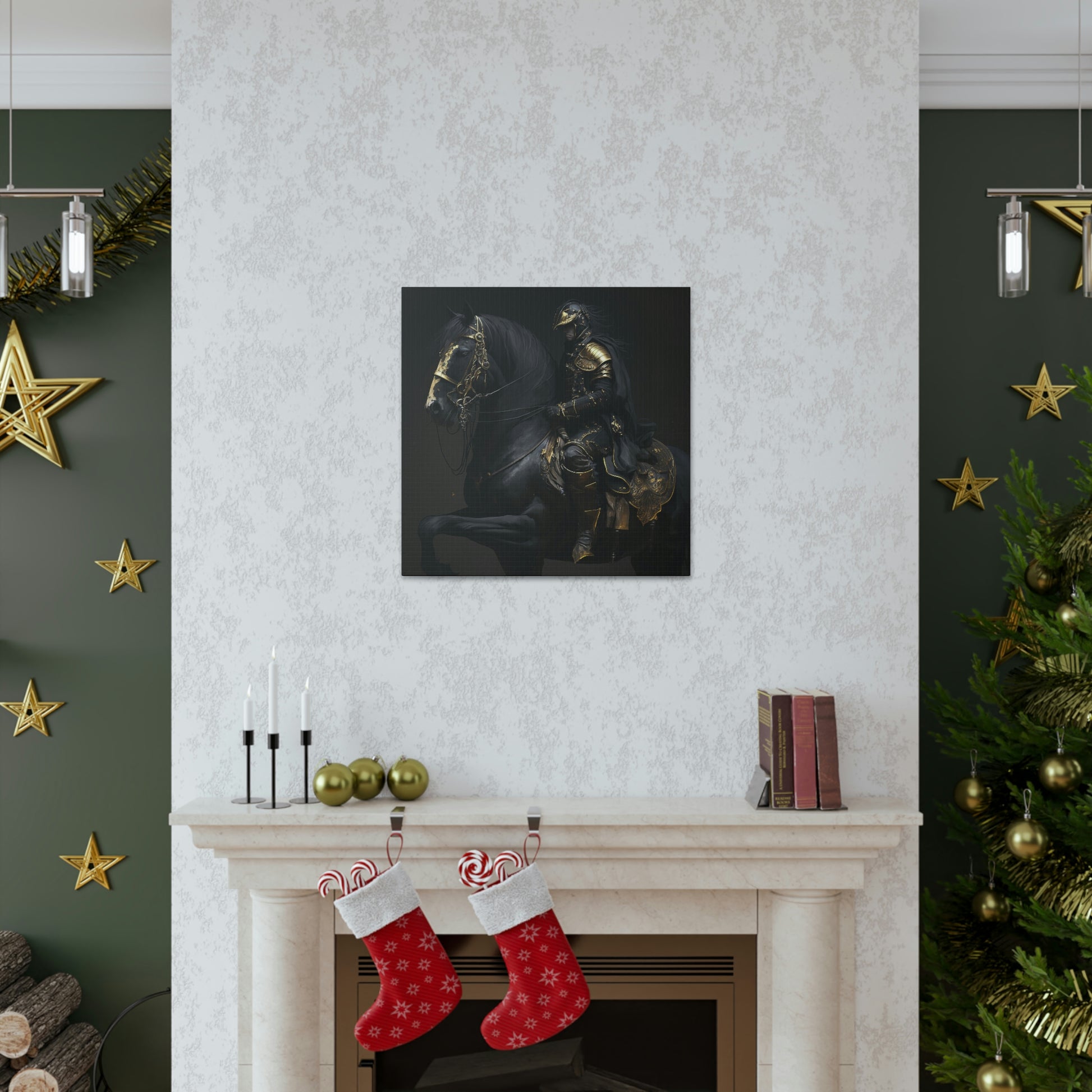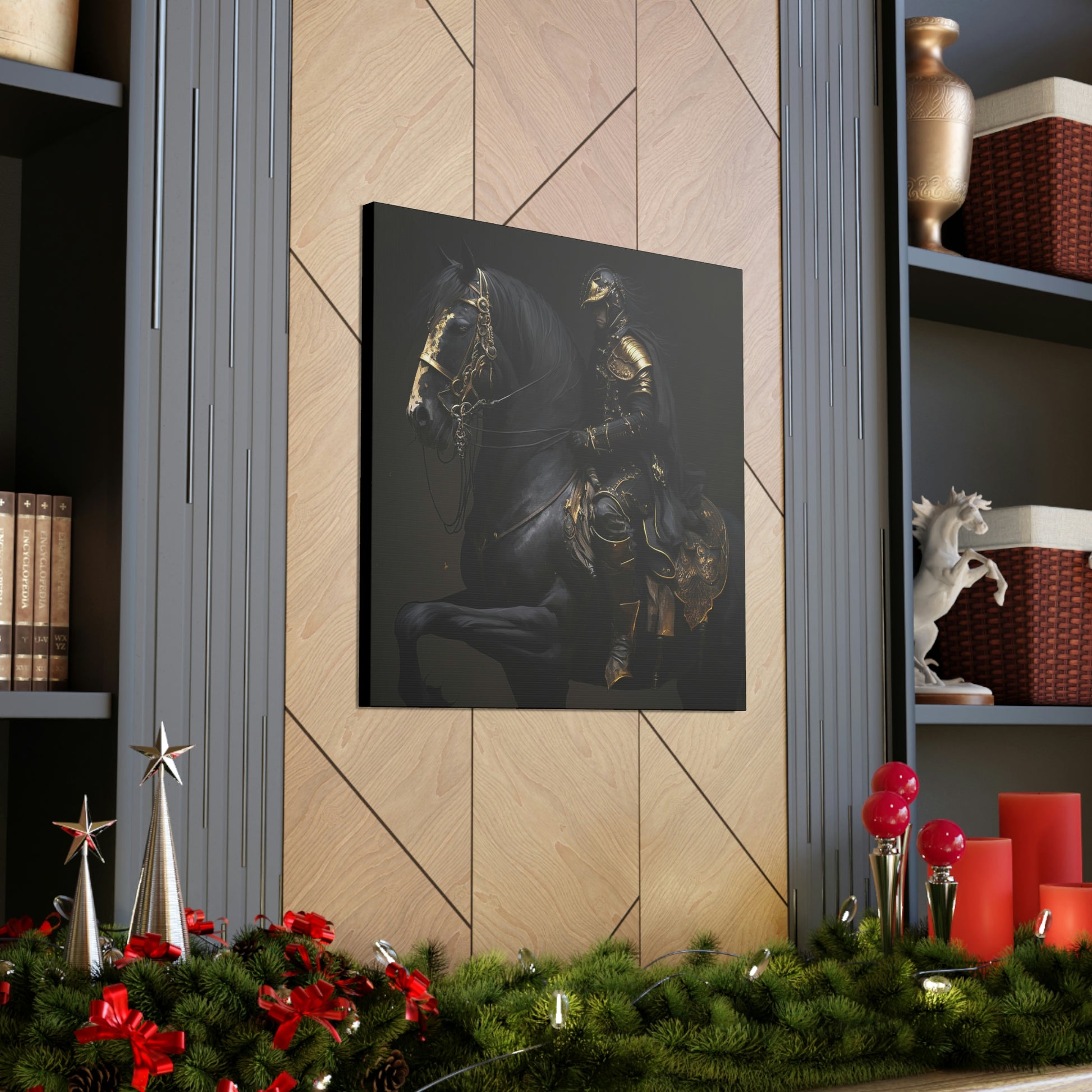 The black and gold mounted knight canvas print is a breathtaking and unforgettable work of art that is sure to inspire awe, respect, and admiration. It is a celebration of the chivalrous spirit and the enduring legacy of the knightly tradition, and a testament to the enduring power and beauty of human courage and nobility.